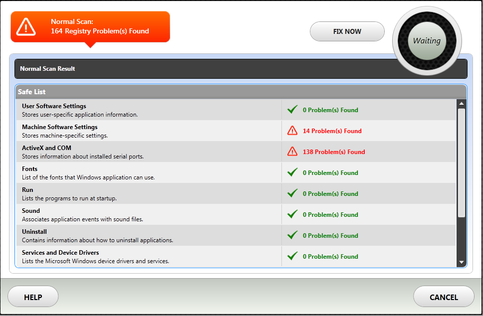 Registry Fixer completes the scan and displays the Safe List showing the errors that can be automatically fixed without risk to your system. Use the scroll bar on the right to view the complete list.